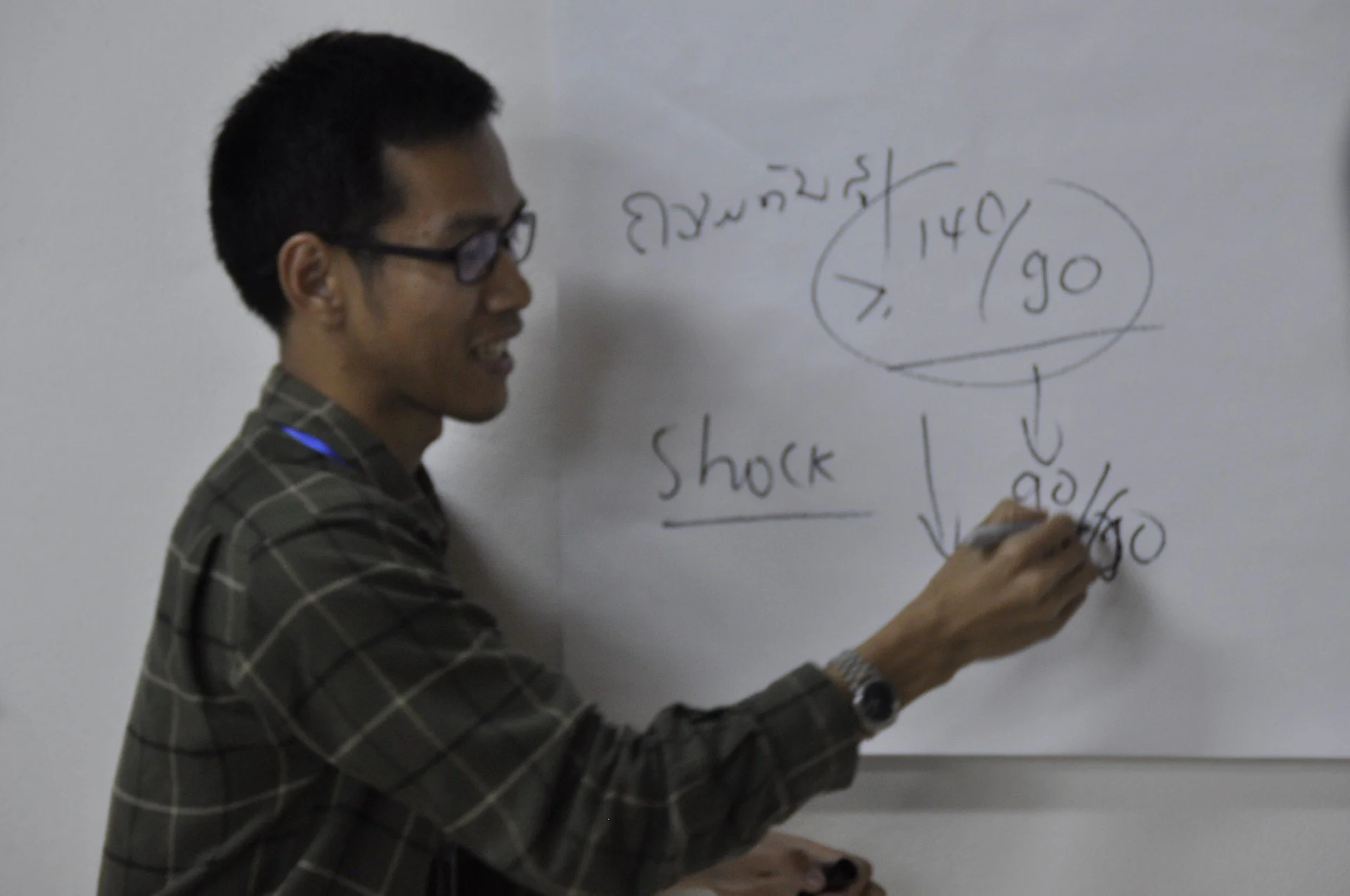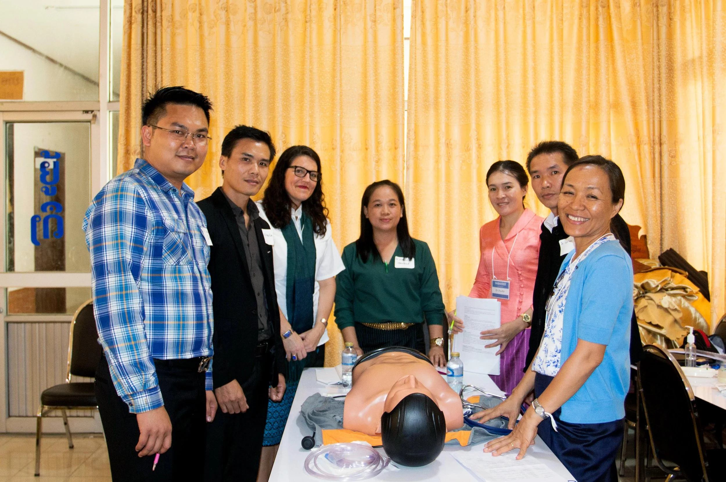 At the outset of every training, HLI physicians and their Lao co-trainers assess the medical knowledge base of each student cohort group to adjust and tailor the course content and level of difficulty accordingly. In past years, the clinical faculty has offered training to two different populations in Lao PDR: District health workers serving rural areas –some with limited medical education — and University of Health Sciences (UHS) physician interns in the capital city, Vientiane.